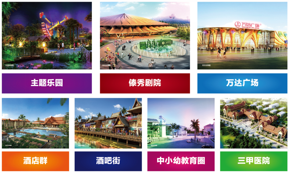 万达西双版纳国际度假区,项目整体占地5.3平方公里,项目整体规划七大业态,分别为万达广场、六星级酒店群、三甲医院、傣秀剧院、主题乐园、中小幼教育圈和酒吧街,是继武汉中央文化广场、万达长白山国际度假区后的第三个万达城项目,但确是万达第一个真正意义上的主题乐园型万达城,项目开业便广受关注。首先,这是万达斥资160亿元打造的万达城,光是主题乐园里的一个过山车便报价1亿元,引进三甲医院也是豪掷巨资;第二,为什么要建在西双版纳这样的边陲城市,虽然这里环境优美,但是相比海南成熟的发展环境,这里还是风险更高一些。在项目初期成型时,独具特色的少数民族风情已经展现出来,于是人们把眼光纷纷投向这里,但是投资,还是早了点。